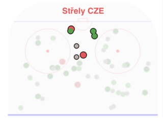 Srovnání 5v5 střel v průběhu zápasu (zvýrazněny výrazně nebezpečné střely)